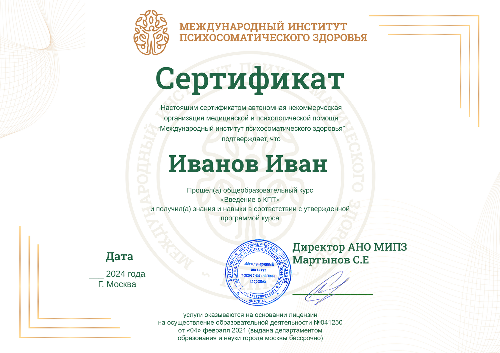 В конце обучения мы выдаем сертификат, подтверждающий, что Вы прошли общеобразовательный курс с и получили знания и навыки в соответствии с утвержденной программой курса
